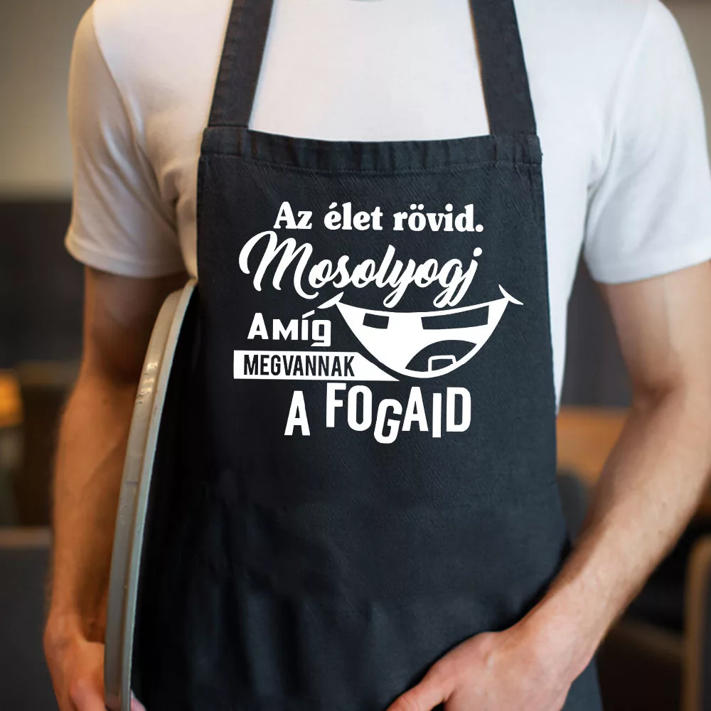 Vicces kötény fogászoknak - Az élet rövid, mosolyogj