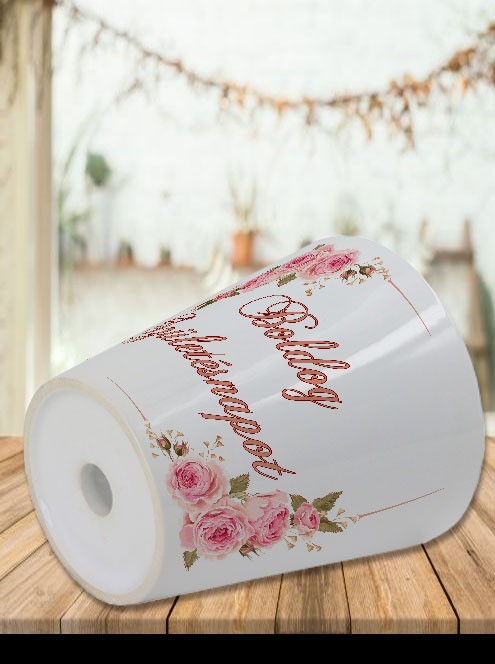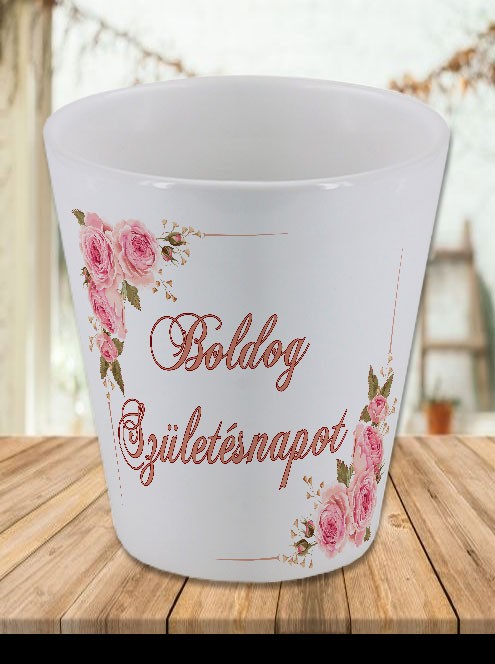 Szülinapi ajándék, boldog születésnapot virágcserép. Gyönyörű virágos nyomattal és boldog születésnapot felirattal díszített fényes felületű virágcserép. Kiegészítésként ajánljuk kisebb cserepes növények átadására.