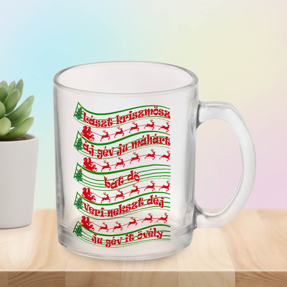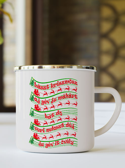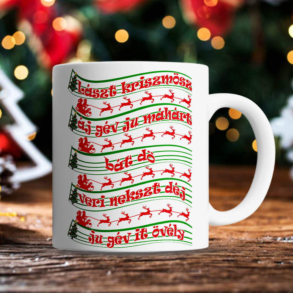 Humoros karácsonyi bögre, lászt kriszmösz. Vicces karácsonyi bögre ajándékba a család minden tagjának, egy klasszikus karácsonyi dal szövegének vicces mintájával.
