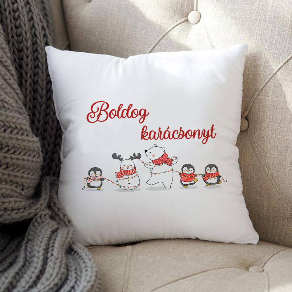 Karácsonyi ajándék, aranyos mintás párna. Cuki állatokkal és boldog karácsonyt felirattal ellátott párna. Használd karácsonyi dekorációként vagy ajándékként kívánj vele boldog karácsonyt gyerekeknek, felnőtteknek.