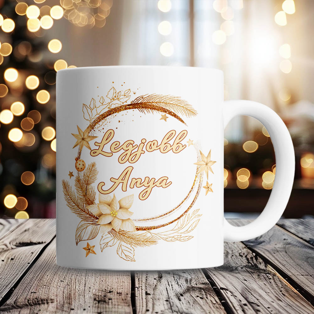 Ajándék karácsonyra, legjobb anya bögre. Arany színű gyönyörű minta a legjobb anya felirattal. Karácsonyi meglepetés a legjobb édesanyának.