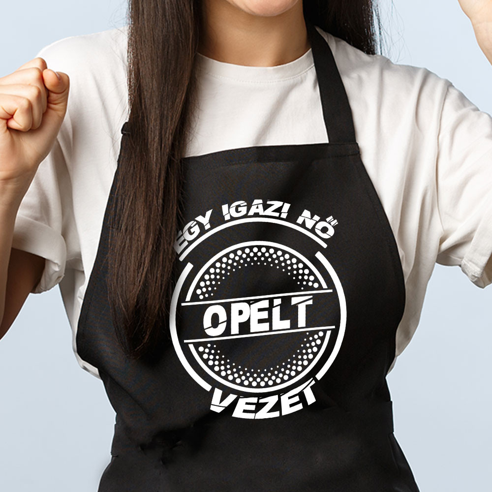 Opel kötény, igazi nő opelt vezet. Egy igazi nő Opelt vezet feliratos kötény. Egyedi ajándék Opel tulajdonosoknak vagy olyan ismerősödnek aki ilyen autóról álmodozik születésnapra, névnapra.