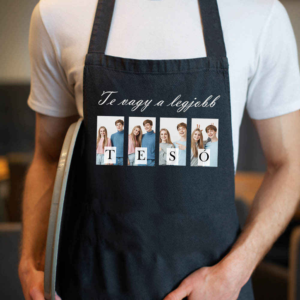 Vidám és egyben megható ajándék, amely minden közös sütés-főzést élménnyé tesz. A „Te vagy a legjobb Tesó” mintával és 4 személyes fotóval díszített kötény különleges meglepetés a gasztronómia kedvelőinek. Strapabíró anyagból készült, kényelmes viselet, ami a szívhez szól.