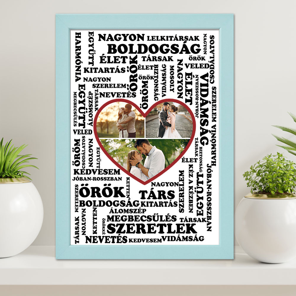 Valentin napi ajándék fotóval, falikép szerelmes szavakkal. Legjobb valentin napi vagy évfordulós ajándék barátodnak, barátnődnek, férjnek, feleségnek. Mondd el neki egy faliképpel mennyire is szereted őt.