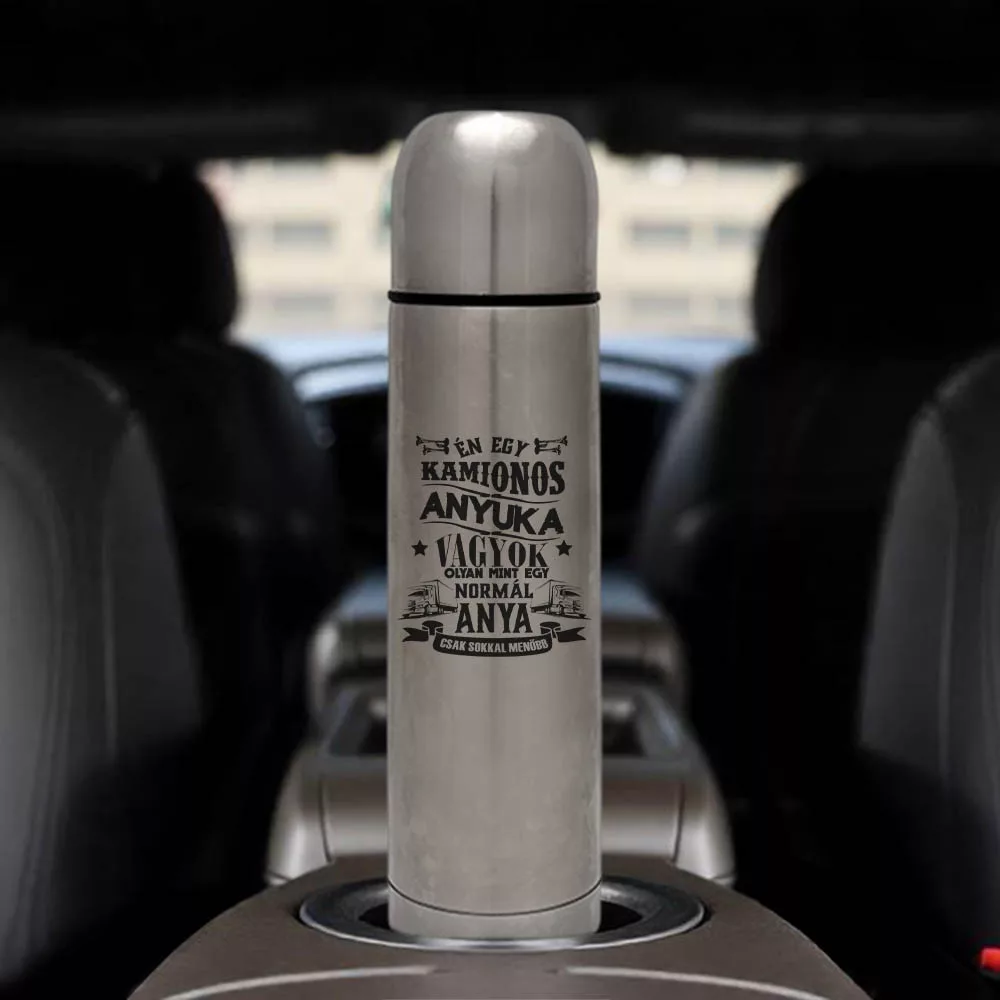 Meglepetés anyáknak, kamionos anyuka termosz. Termosz kamionos anyukáknak, ajándék nőknek. Én egy kamionos anyuka vagyok, olyan mint egy normál anya, csak sokkal menőbb feliratos termosz. Ajándékozd meg vele Őt anyák napján vagy születésnapján.